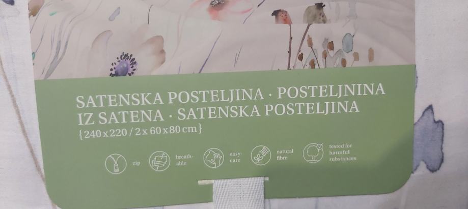 Nova posteljina 220/240 cm, neotvorena. 1 navlaka za prekrivač i 2 jastučnice. Vrsta tekstila: prirodna vlakna, površina tekstila: saten, sastav materijala: 100 % pamuk. Patentni zatvarač. Plaćena 89,99 eura.