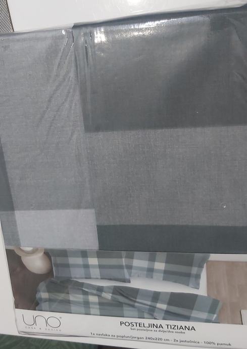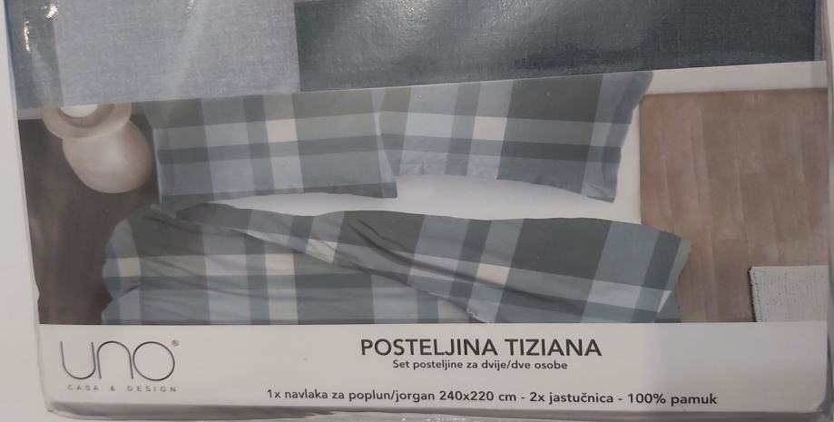 Nova posteljina 220/240 cm, neotvorena. Udobna pamučna posteljina s decentnim dezenom idealno se uklapa u svaku spavaću sobu. Posteljina se sastoji od jedne navlake za poplun dimenzije 240x220cm i dvije jastučnice dimenzije 60x80cm. Materijal: pamuk. Plaćena 34,99 eura. Prodajem još jednu, sa drugačijim dezenom. Dvije prodajem za 50 eura.