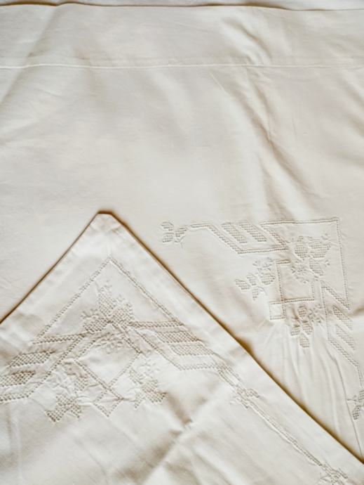 Prodajem bijelu novu šlinganu (vezeno) posteljinu za dupli krevet, ručni rad.