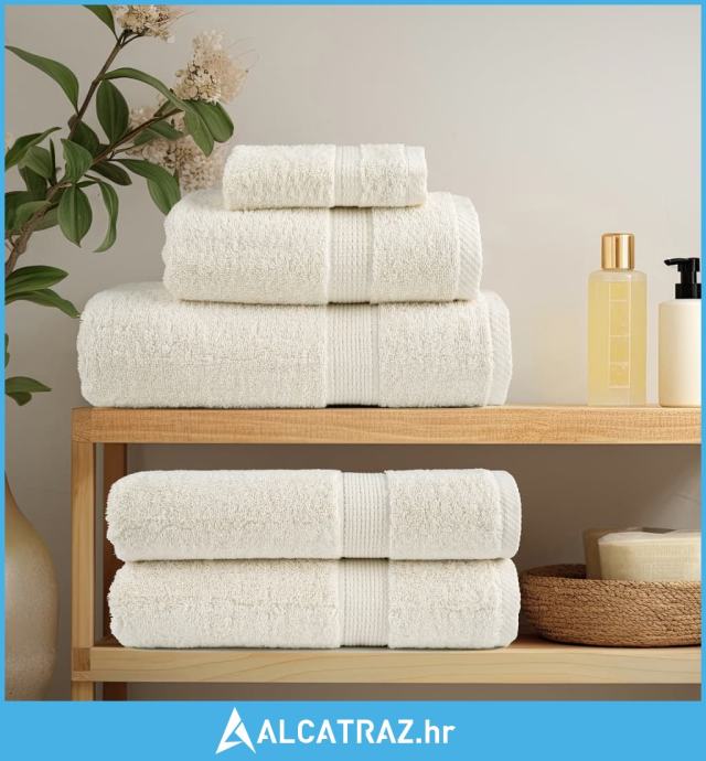 - Super mekan i vrhunski materijal: Ovi ručnici napravljeni su od 100 % prstenasto ispredenog pamuka, koji je mekan, izdržljiv i otporan na blijeđenje. Certificirani su prema STANDARDU 100 od strane OEKO-TEX-a i testirani na štetne tvari, što ih čini pouzdanima i sigurnima za upotrebu.