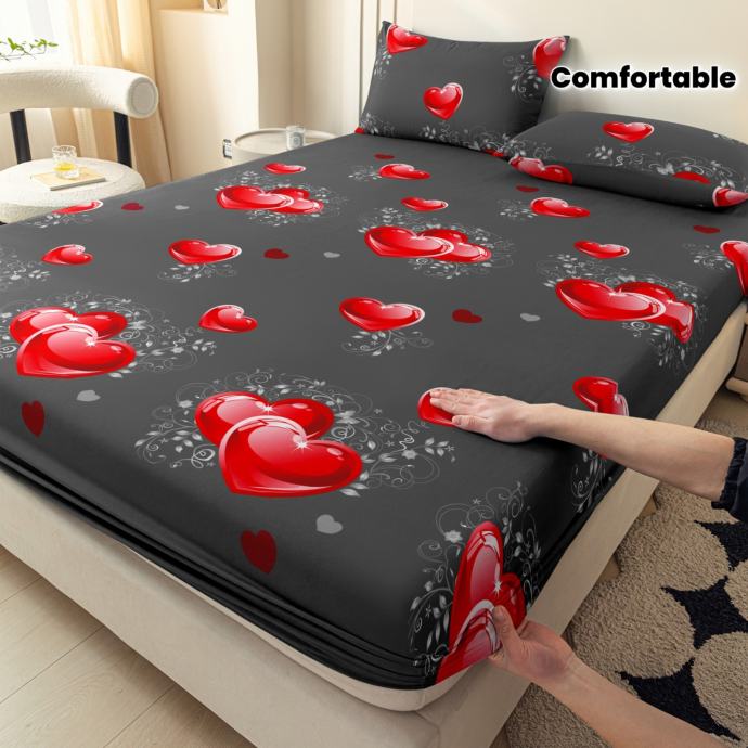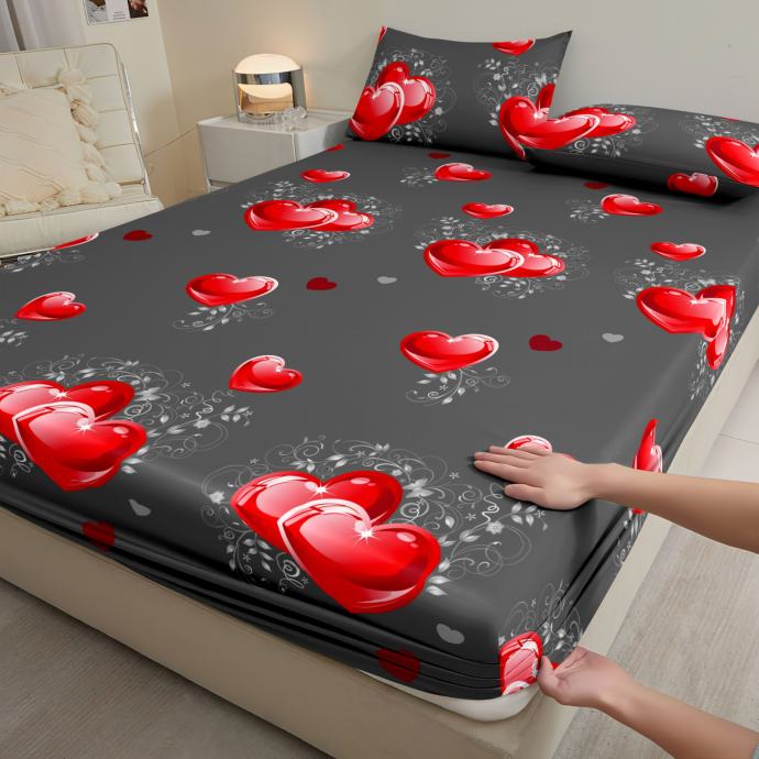 Set od 3 posteljine s printom breskvastih srca,1 plahta+2 jastučnice