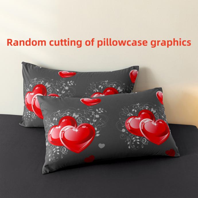 Set od 3 posteljine s printom breskvastih srca, modni print, klasičan, mekan i udoban, pogodan za spavaće sobe i sobe za goste, jedna plahta + dvije jastučnice, bez jezgre za jastuk