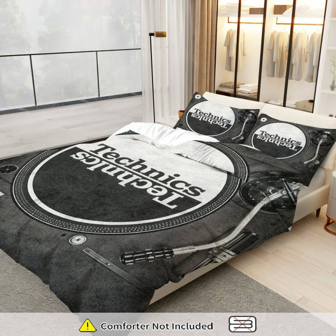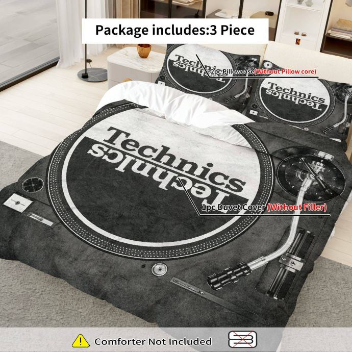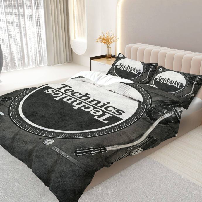 3 komada seta navlaka za poplun, 1 poplun + 2 jastučnice (bez punila), vintage glazba s gramofonom i DJ tehnikom, set posteljine za Noć vještica, retro glazbeni dekor, pogodno za uređenje spavaće sobe, dnevnog boravka, glazbene sobe, studija.