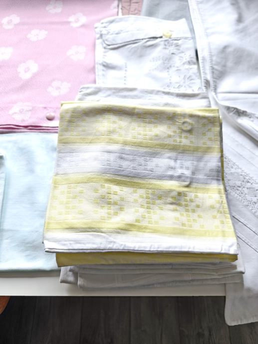 4. Bijela pamućna, šivane od ostataka komada platna, korištene očuvane, dvije iste, 38 x 45 cm, obje 1 €