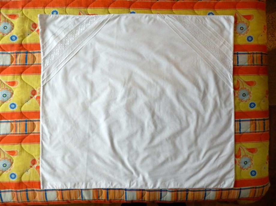 8. Bijela starinska velika jastučnica - ili mali šlifer - sa čipkom i proštepima, 86 x 77 cm...Na uglovima su proštepi i čipka...kopča se na