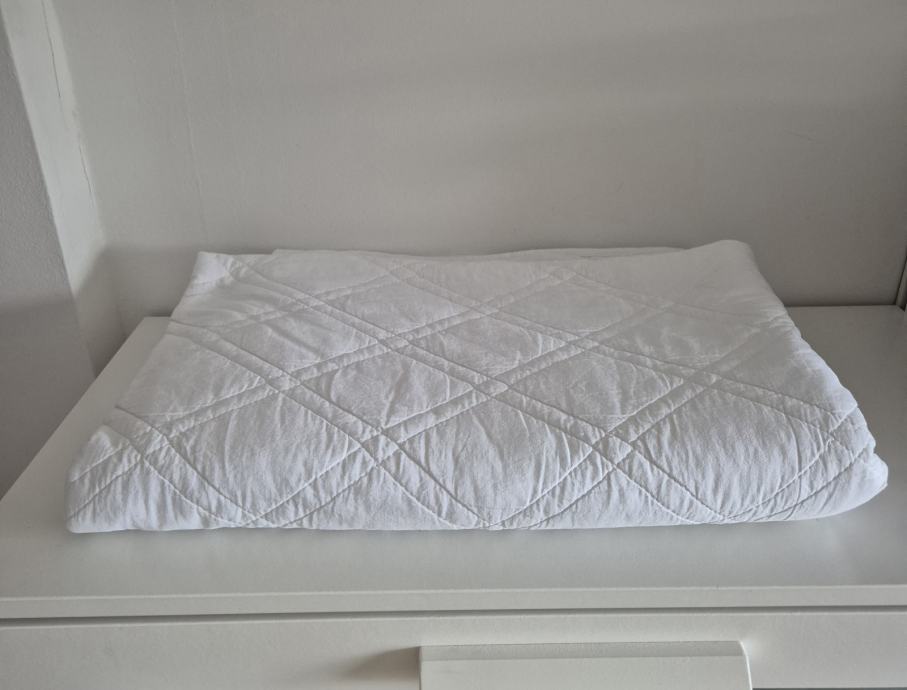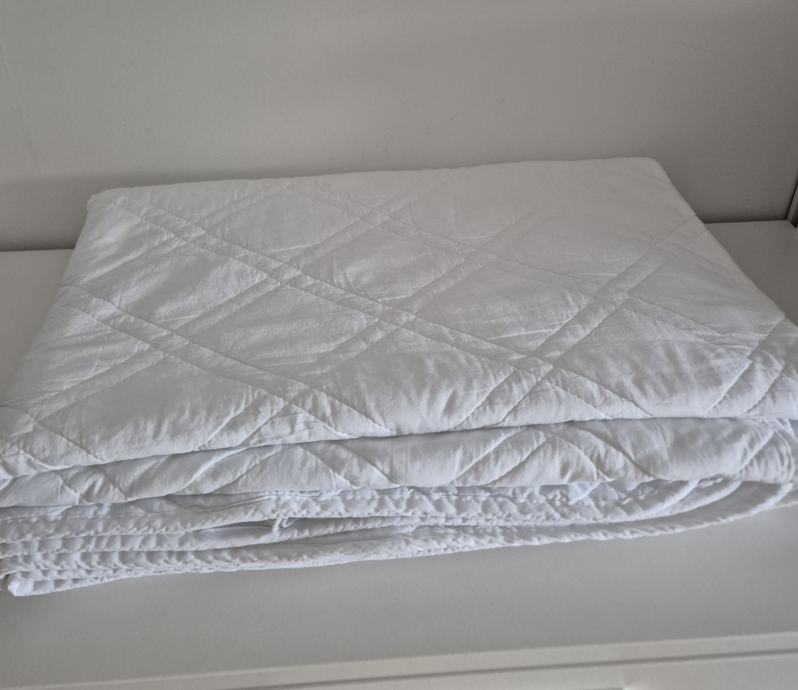 Zaštita za madrac, za bračni krevet, dimenzije 160x200 cm. izvana pamuk, iznutra lagano punjenje poliester, na rubovima gumice za lakše fiksiranje za madrac. Pere se na 60°i može se sušiti u sušilici. Lagano se održava i čuva madrac od mrlja.