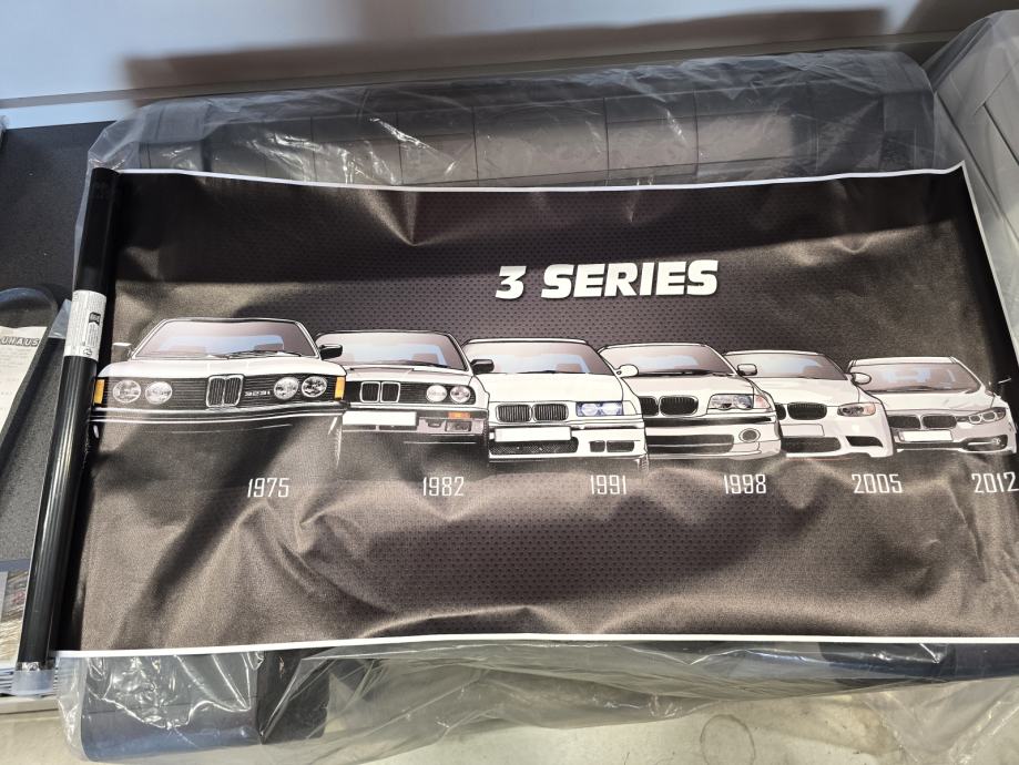 Prodajem visokokvalitetni plakat na platnu (canvas) s prikazom evolucije legendarne BMW serije 3. Na posteru su prikazane generacije od prve E21 (1975.) pa sve do F30 (2012.).