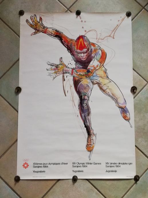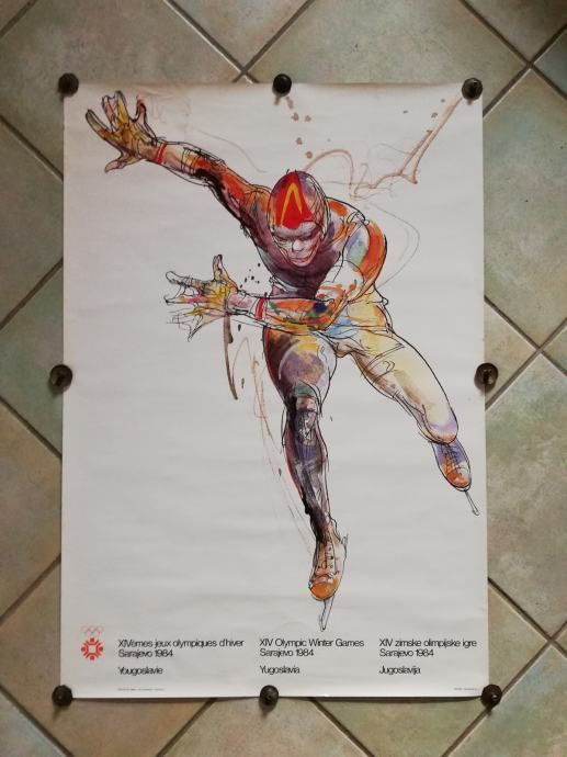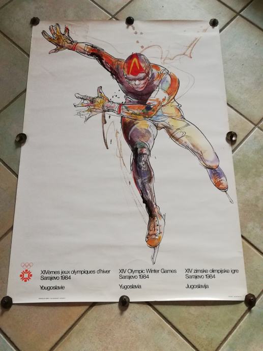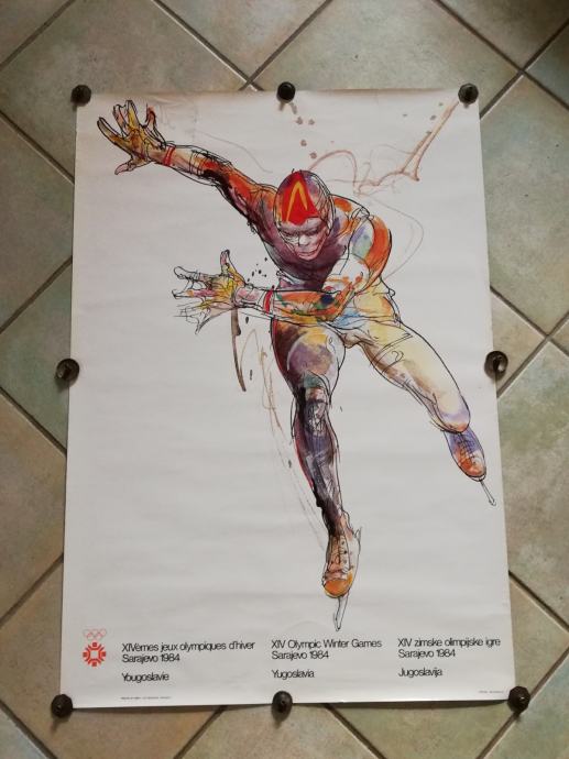Brzo klizanje, službeni plakat XIV. Zimskih olimpijskih igara u Sarajevu 1984.g., design: Mujezinović I., Dimenzije : 98,5 x 70,0 cm. Tisak: Oslobođenje, Sarajevo.