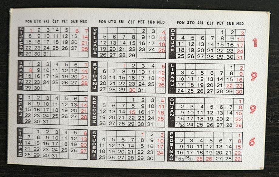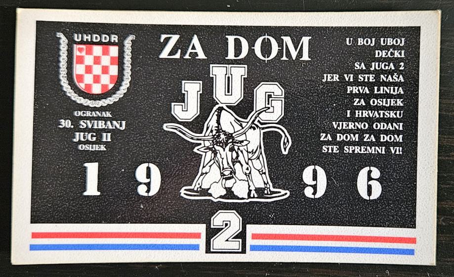 ZA DOM JUG 2 Osijek 1996 UHDDR kalendar 9.4 x 5.6 cm