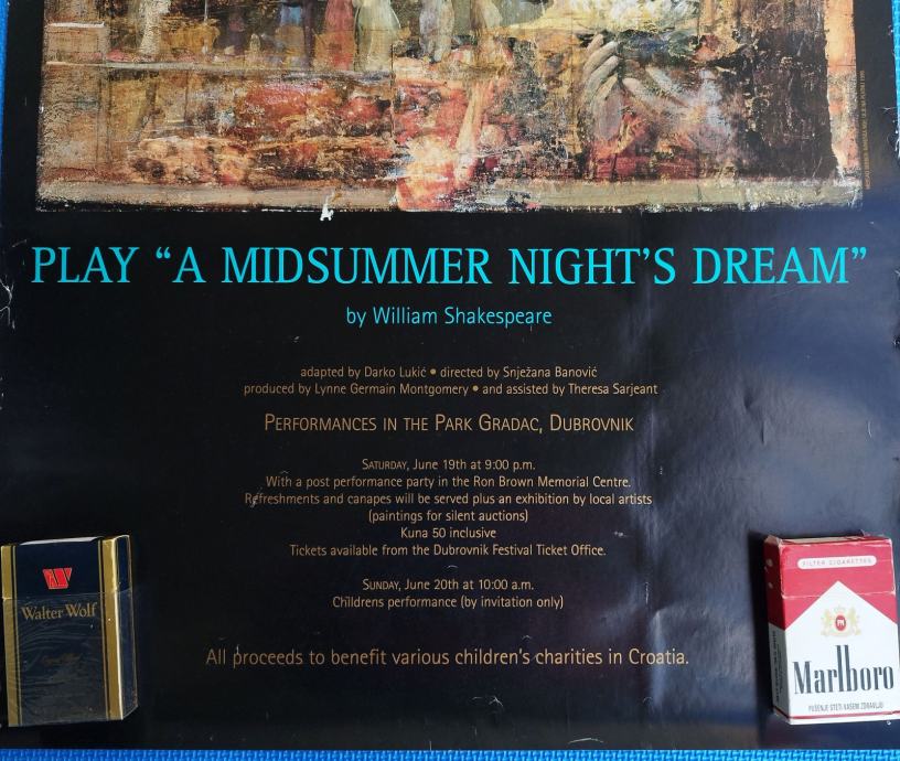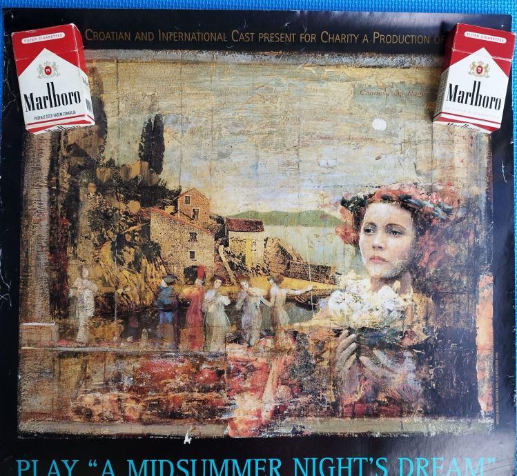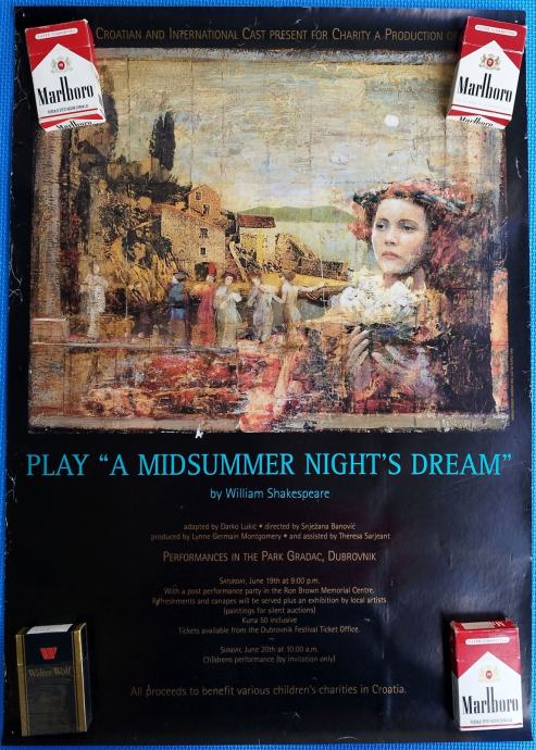 DUBROVNIK FESTIVAL prekrasni stari službeni plakat za kazališnu predstavu PLAY A MIDSUMMER NIGHT's DREAM autora William Shakespeare-a.