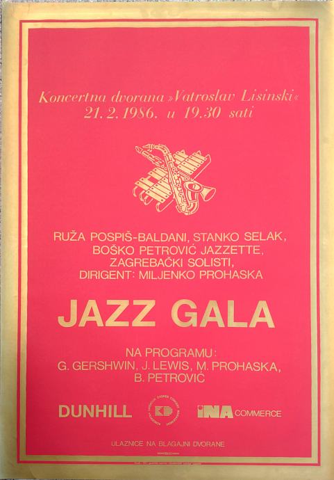Prodajem original plakata za JAZZ GALA koncert u Zagrebu 21.2.1986.