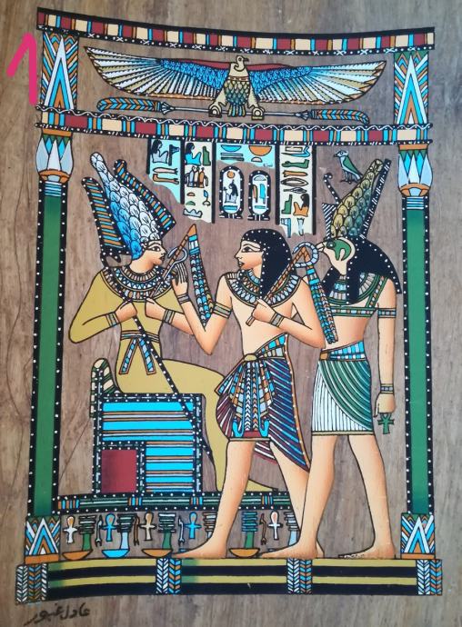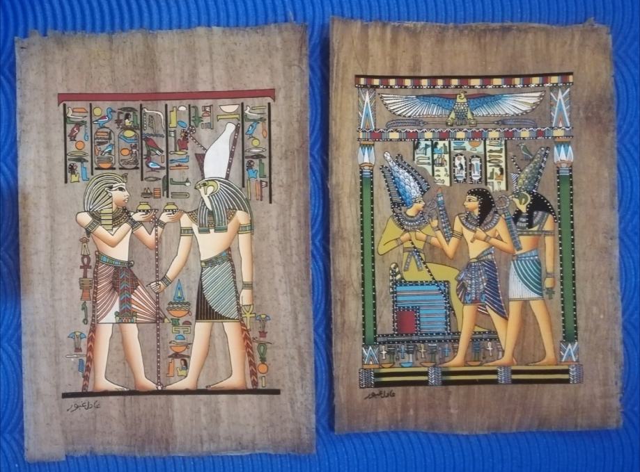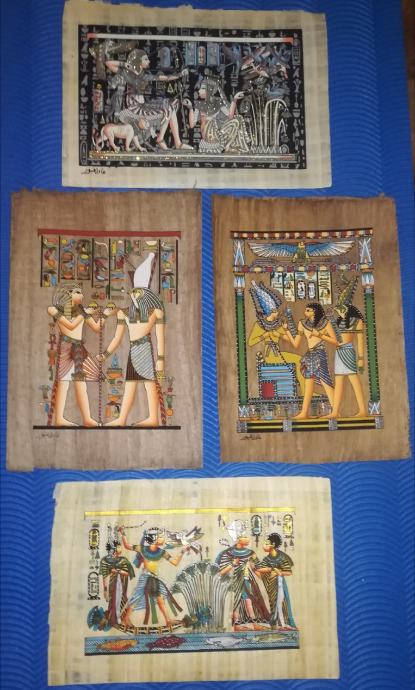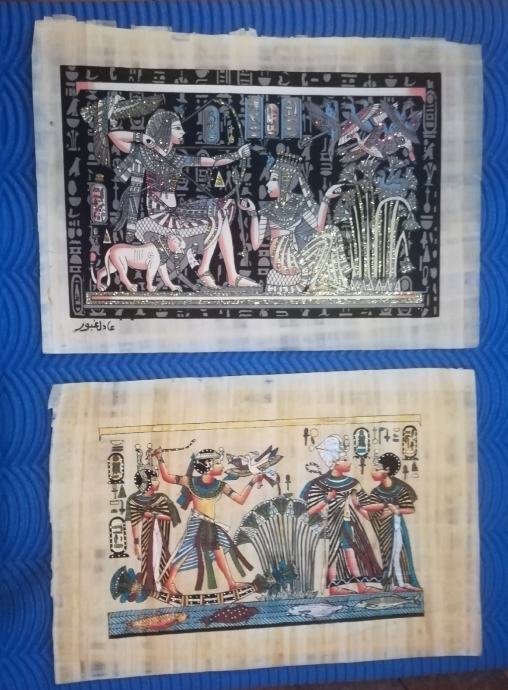 Prodajem 4 nova crteža egipatskih motiva na papirusu, kupljeno osobno u Egiptu.