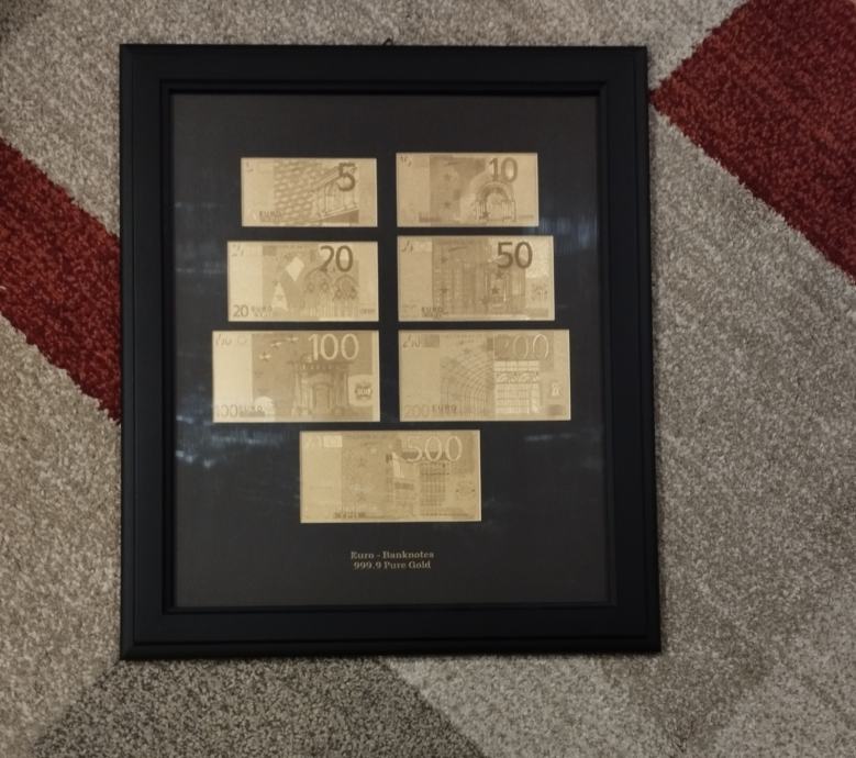 Euro novčanice - pozlaćeno - uokvireno