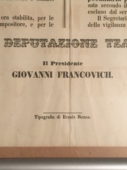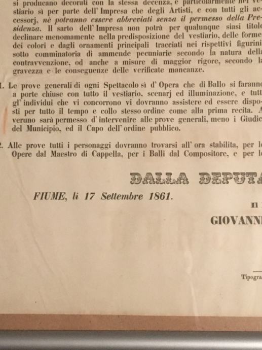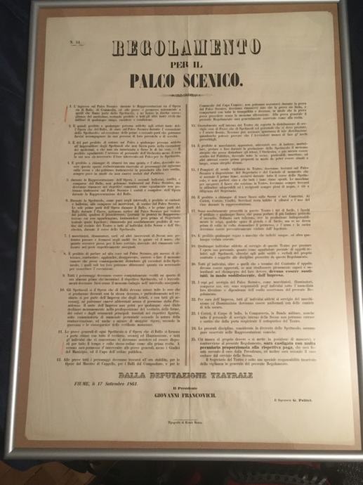 Radi se o starom Adamicevom kazalištu koje je postojala na mjestu današnjeg pallaza Modella i koje je bilo centar kulturnog i društvenog života rijeke.