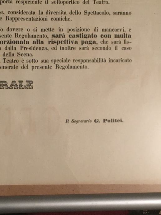 Veliki poster 50x70 cm -pravilnik o nastupu na sceni u kazalištu iz 1861.godina.