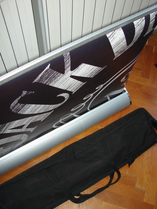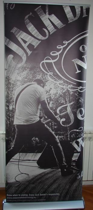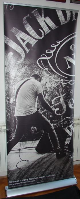 JACK DANIELS - prezentacijsko / reklamno roll up platno sa montirajućim stalkom. Izrazito kvalitetna izrada. Jednostavno sklapanje i rasklapanje. Dolazi s pripadajućom platnenom futrolom. Visina cca 180cm.