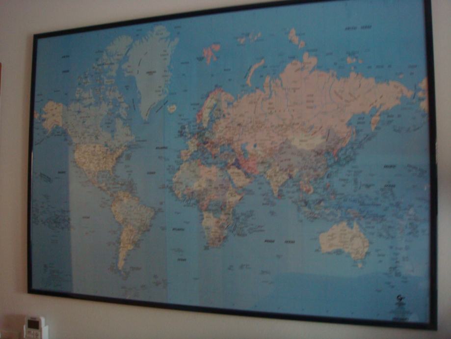 Veliku uokvirenu i ostakljenu zidnu kartu svijeta, 71x102cm, prodajem za 100 kuna
