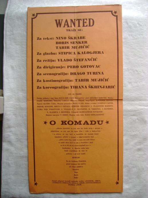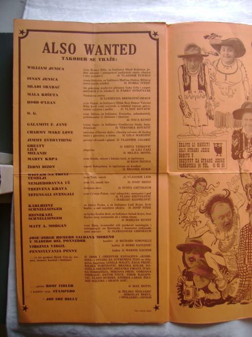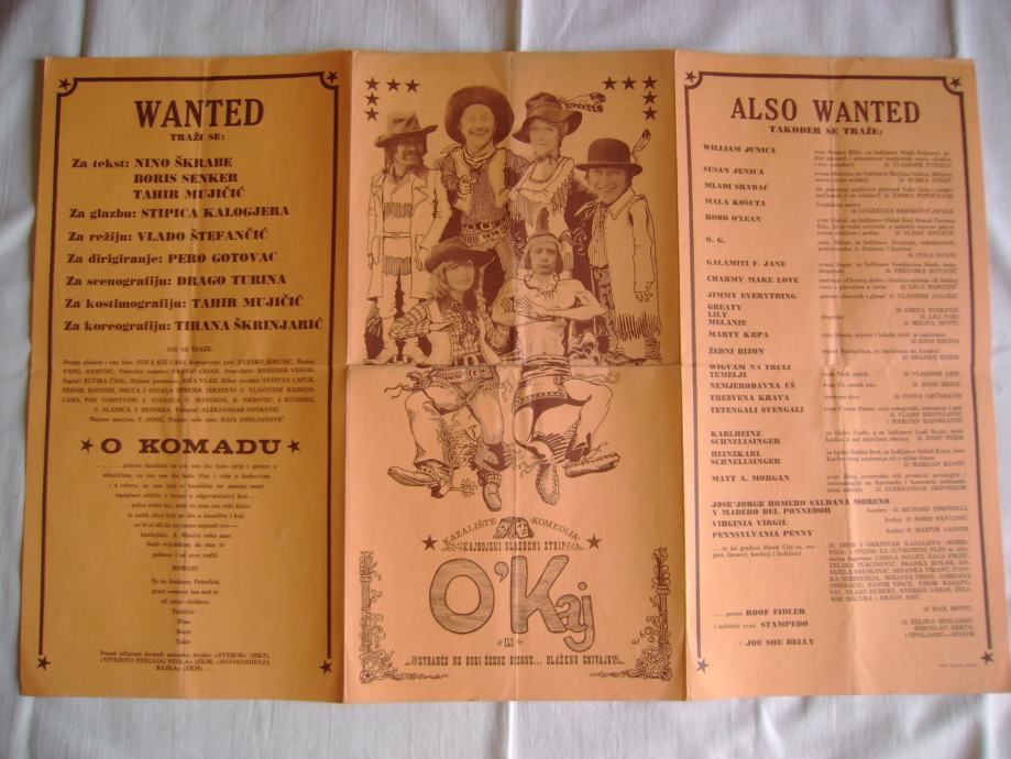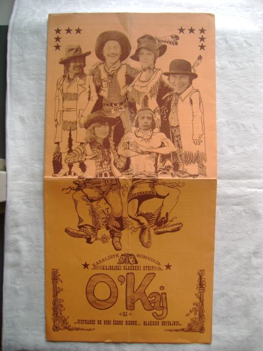 Kazalište "Komedija" - Plakat za Mjuzikl O'Kaj ili Stranče ne budi žedne bizone...blaženo spavaju (Kaubojski glazbeni strip), 67 x 44 cm - stanje je vidljivo na slikama.