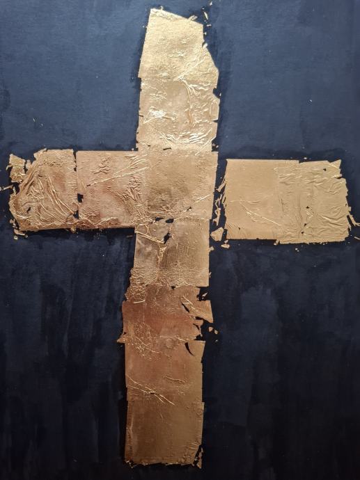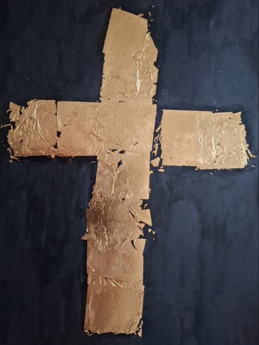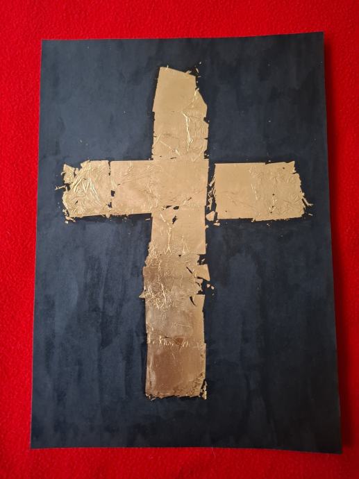 Križ izrađen na kartonu od mikronske zlatne folije.