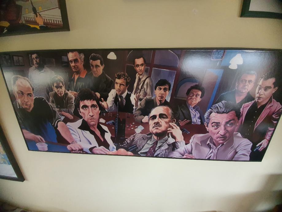 Prodajem print s drvenim okvirom s likovima iz Godfather filmova, serije Sopranos i filma Goodfellas.