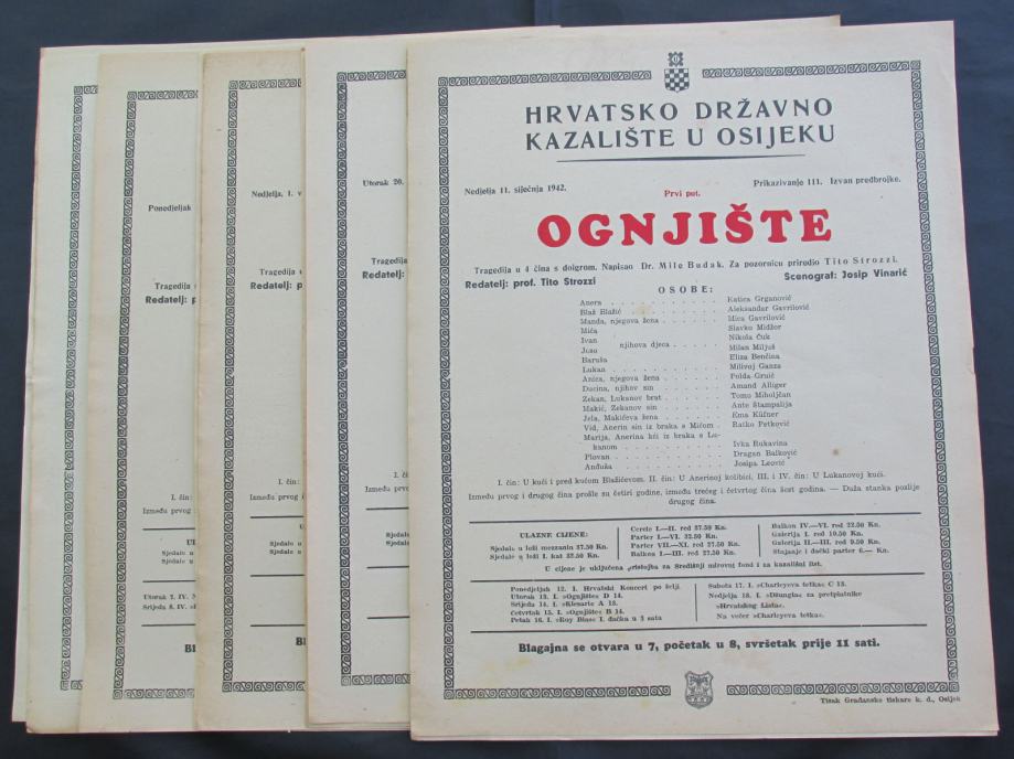 Mile Budak - OGNJIŠTE, Kazalište Osijek 1942.g. 11 plakata NDH period