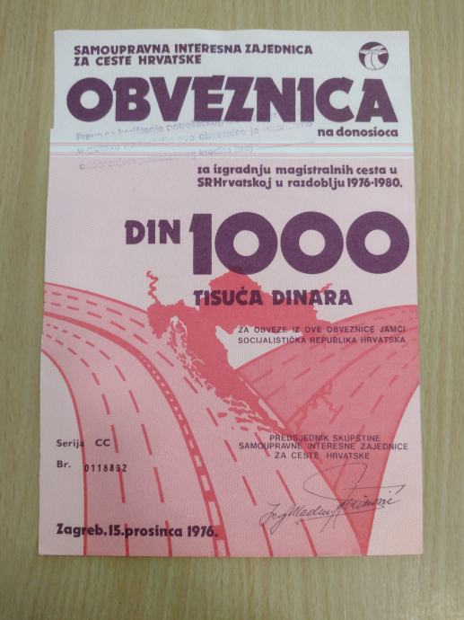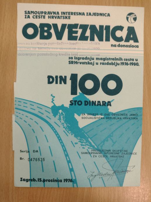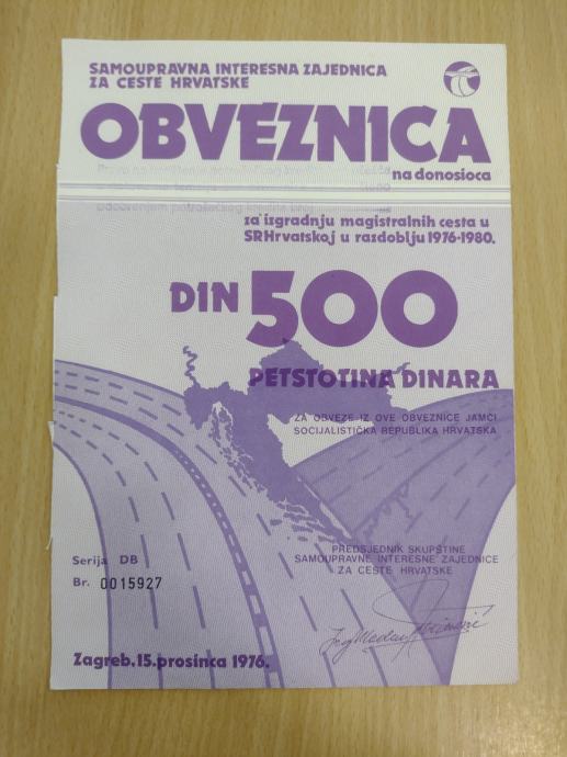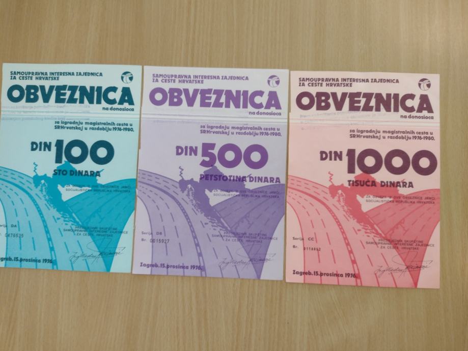 Prodajem lot od 3 obveznice za izgradnju magistralnih cesta u Hrvatskoj 1976-1980.