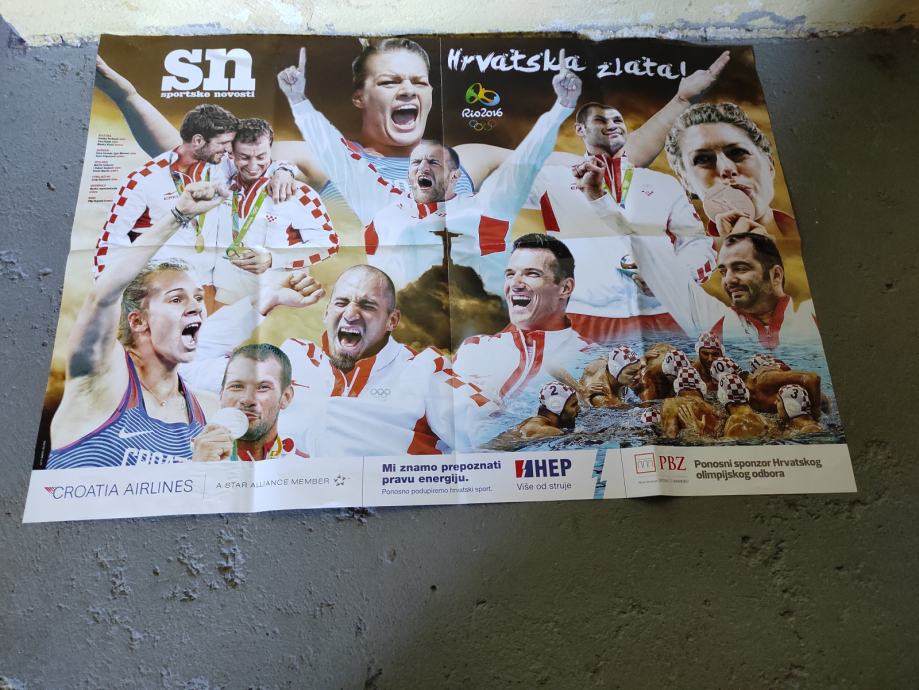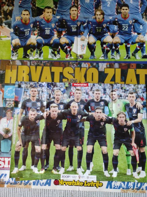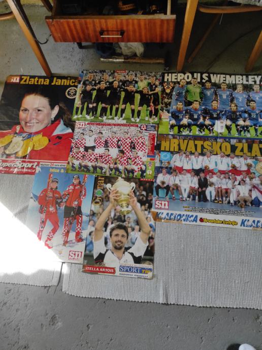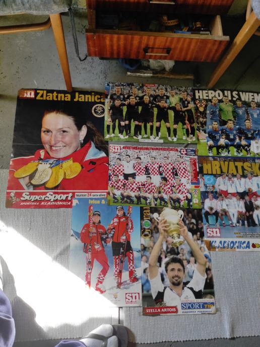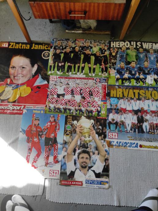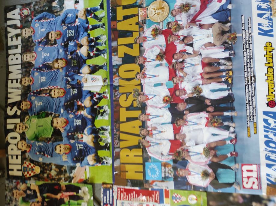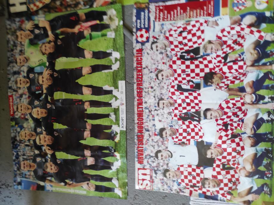 Posteri Hrvatskih sportaša iz različitih sportova ,većinom nogomet,ima poster Hrvatske prije finala svjetskog prvenstva protiv Francuza 2018 godine , zlato rukometaša u Atlanti na Olimpijskim igrama, Ivanišević osvojio Wimbledon itd svi značajni za nas sport ,,mogu poslati Tiskom ili Postom ili u dogovoru sa kupcem molim slati poruke na Viber ili njuskalo ili nazovite na broj 097-660-1365, posteri su ocuvani maximalno. Pogledaj slike, stanje vidljivo na slikama . Cijena za sve postere u kompletu po dogovoru,ovo je cjena za jedan od postera.