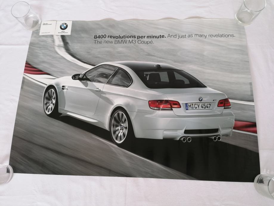 ORIGINALNI PLAKAT POSTER BMW M3 COUPE, na lakiranom papiru, odlično očuvan, savijen u rolnu, prodajem.