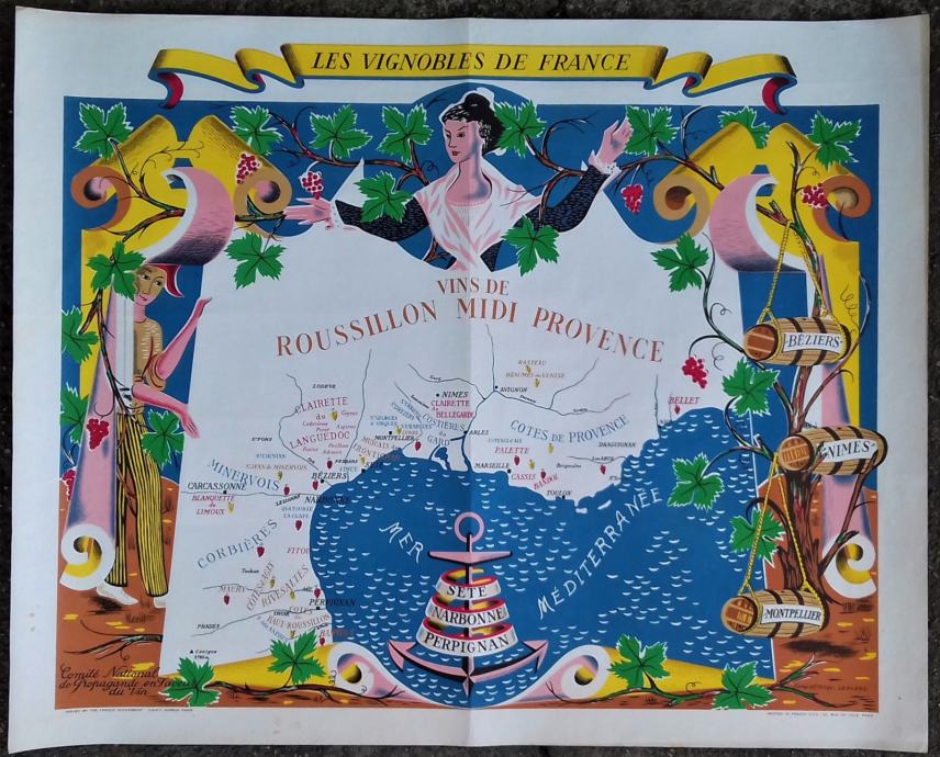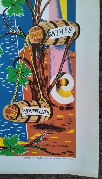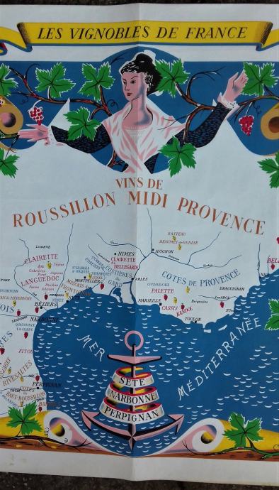 Originalni plakat vinskih regija Francuske iz 1950-tih