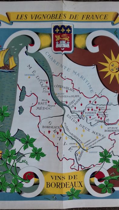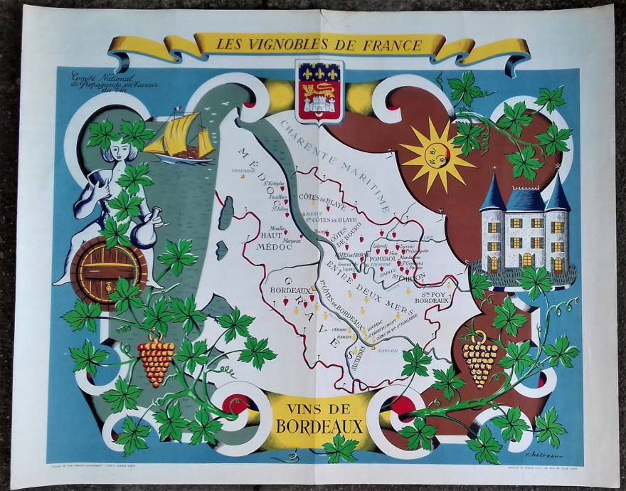 Originalni turistički plakat vinske regije Bordeaux by Remy Hetreau iz 1950-tih.