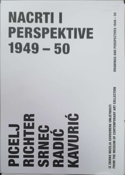 Picelj, Richter, Srnec, Radić, Kavurić: Nacrti i perspektive 1949-50Iz zbirke Muzeja suvremene umjetnostiMapa sadrži otiske nacrta i crteža arhitektonsko-likovnih rješenja izložbenih paviljona u Beču i Stockholmu 1949., Chicagu, Hannoveru i Parizu 1950., te postava izložbi Autoput i Lokalna privreda 1950. Crteži su izvorno rađeni u tehnikama: tuš, olovka, tempera, kolaž, a Muzeju suvremene umjetnosti darovao ih je 1970. Ivan Picelj.