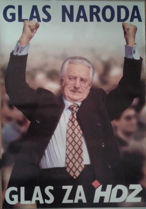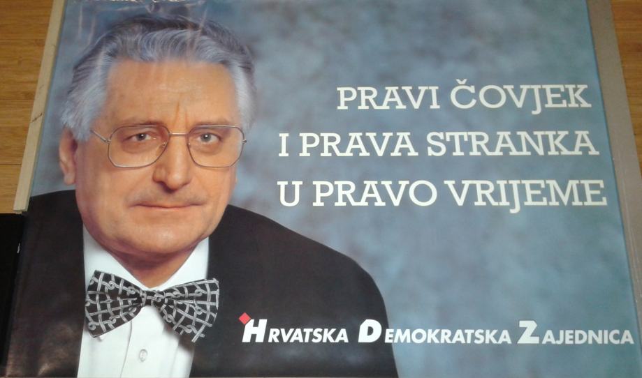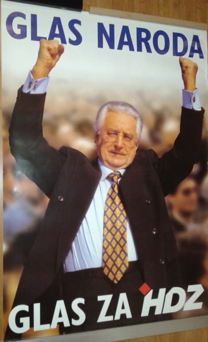Plakat HDZ-a, iz prvih dana HDZ-a, izborni, vrlo raritetni i rijedak, potpuno novi, ne presavijen, veličina 67 x 97 cm, neuramljen, pogodan za simpatizere HDZ-a, HDZ ogranke, zavičajne i iseljeničke klubove, i sl.