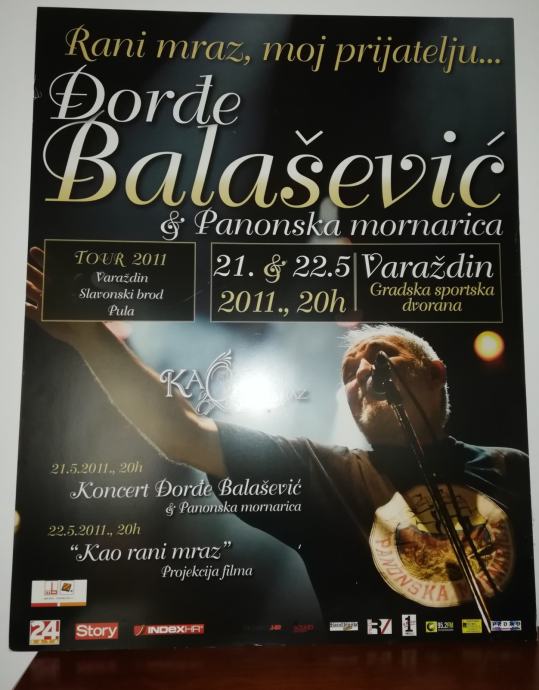 Prodajem plakat s koncerta Đ. Balaševića održan 2011. u Varaždinu. Plakat je na tvrdoj podloci, i primjeren za zid bez oštećenja.