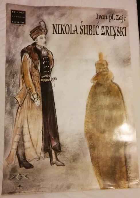 Original plakat za operu Nikola Šubić Zrinski u izvedbi Hrvatskog Nacionalnog Kazališta. Rijedak primjerak, u vrlo dobro očuvanom stanju.