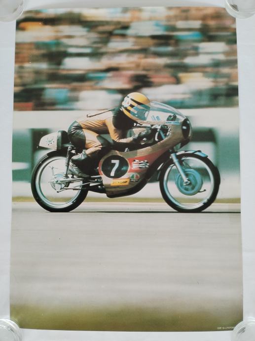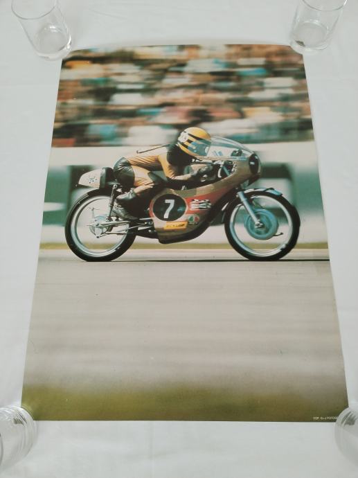 PLAKAT POSTER TRKAĆI MOTOCIKL iz 1980-ih godina 59cm x 42cm