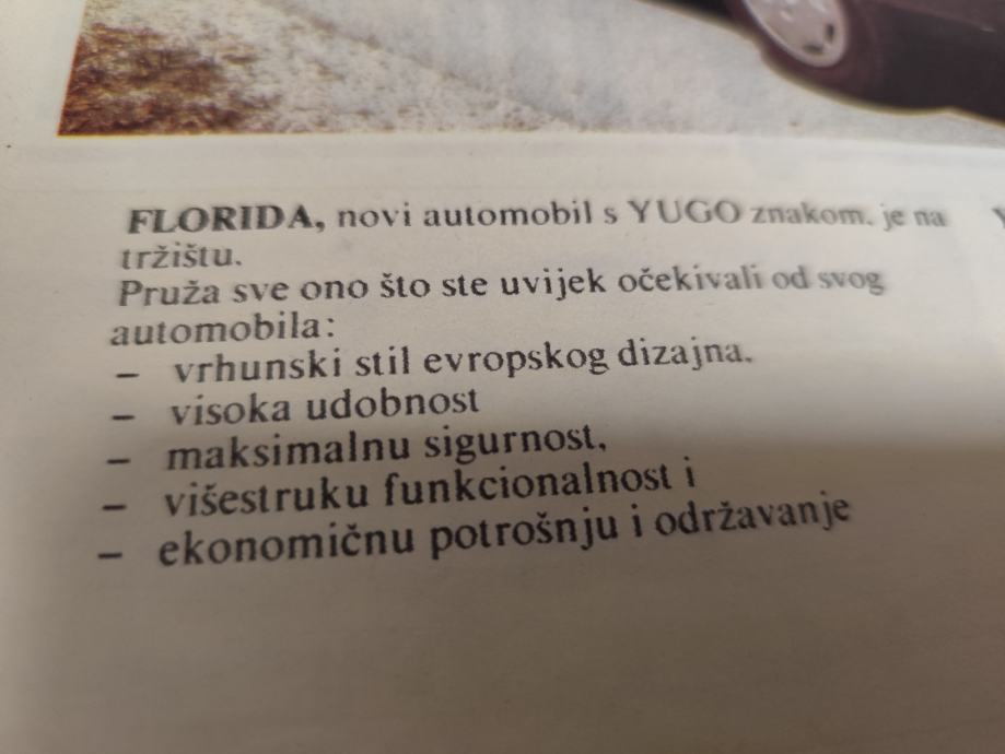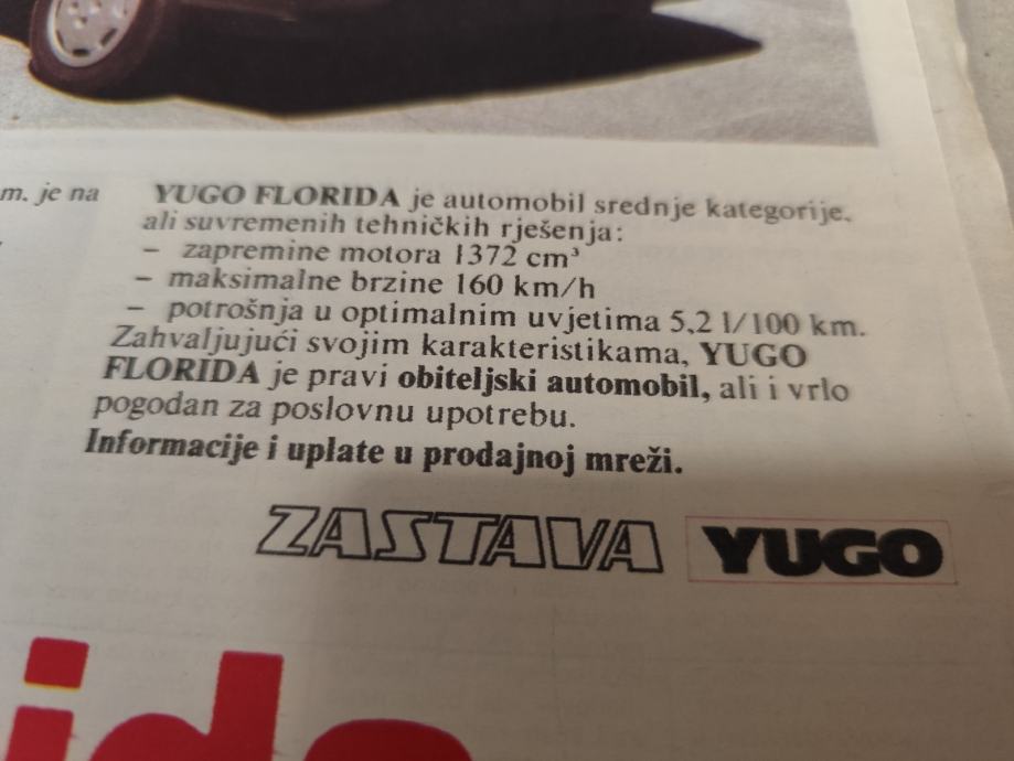 "Zastava Yugo Florida - Budite ispred drugih". - 40 €