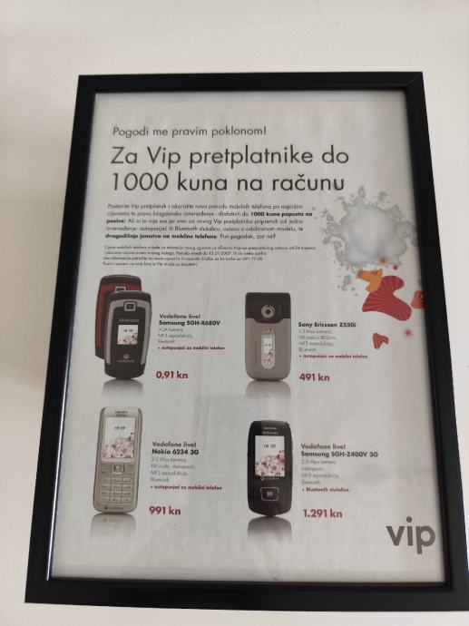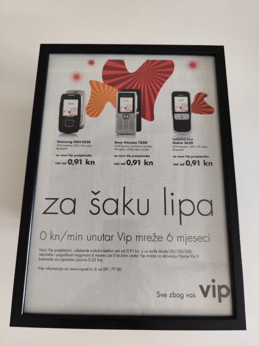 U ponudi su stare reklame tvrtke Vip iz raznih godina,, uokvirene poput plakata ili mini-postera