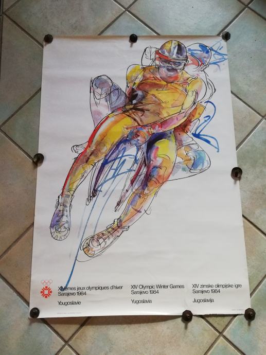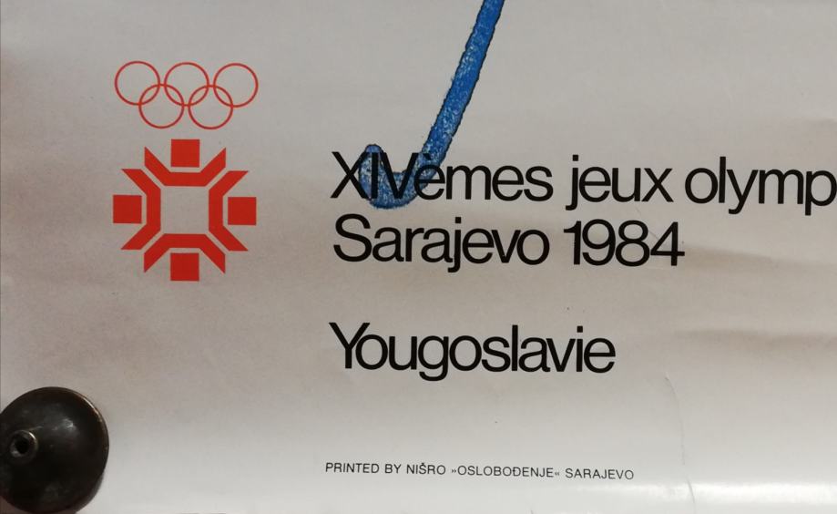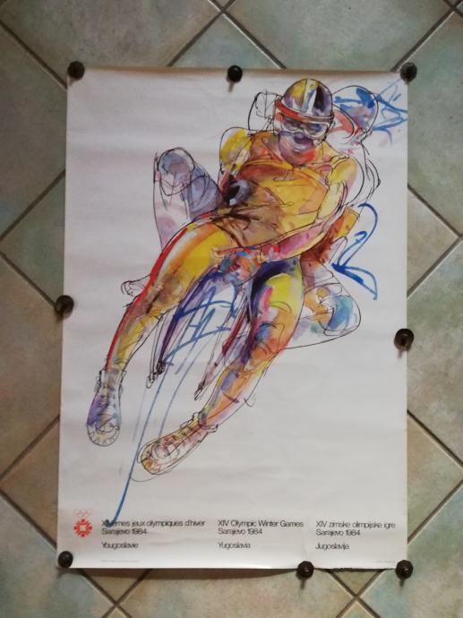 Sanjkanje , službeni plakat XIV. Zimskih olimpijskih igara u Sarajevu 1984.g., design: Mujezinović I., Dimenzije : 98,5 x 70,0 cm. Tisak: Oslobođenje, Sarajevo.