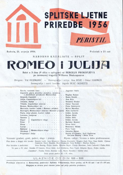 SPLITSKE LJETNE PRIREDBE 1956 PERISTIL - ROMEO I JULIJA 21.srpnja 1956