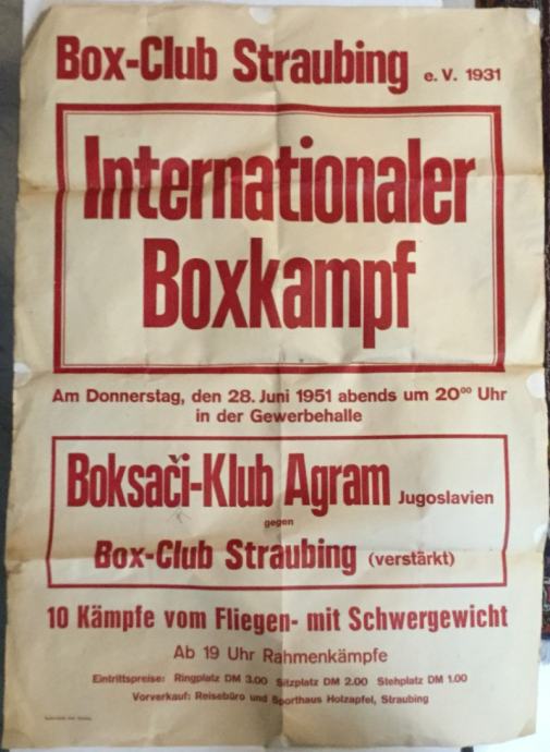 Sportski plakat Internationaler Boxkampf, Boksački klub Agram gegen Bo