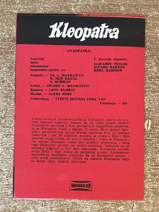 STARA FILMSKA BROŠURA - KLEOPATRA