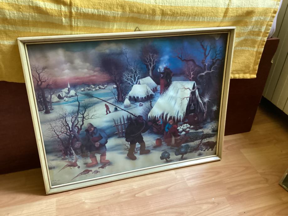 10€ fiksno, poster tj. reprodukcija poznate slike ( Mijo Kovačić), vrlo dobro stanje(4) okvir sa staklom a iza je poster malo naboran, mali tragovi vlage, zato je jeftin. No te tragove sam tek sad primjetio, ne vide se ako se pazljivo ne gleda.