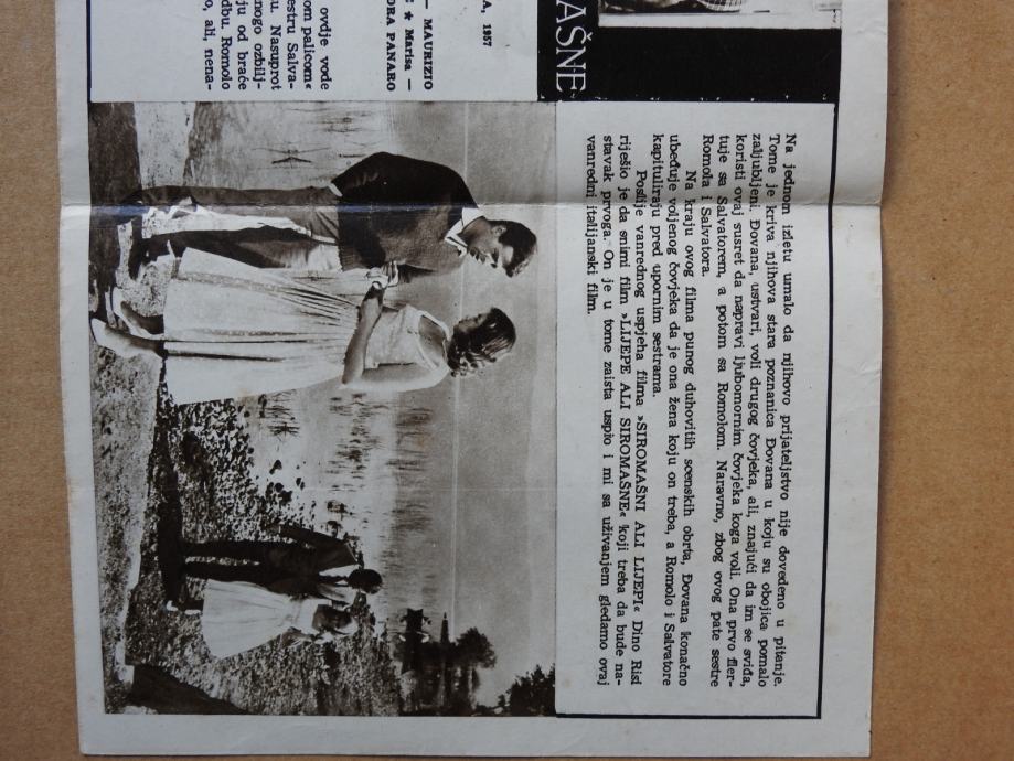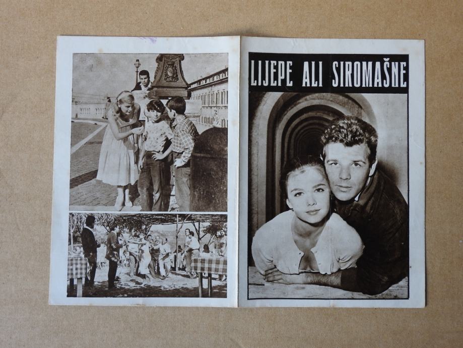 Sadrži crno-bijele fotografije iz filma, osnovne podatke o glumcima (Marisa Allasio, Maurizio Arena, Renato Salvatori, Lorella De Luca, Alessandra Panaro) te sažetak radnje na hrvatskom jeziku.