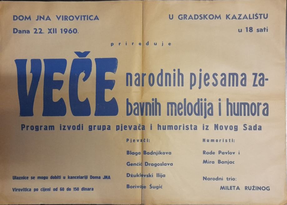VIROVITICA 1960 - VEČE NARODNIH PJESAMA .