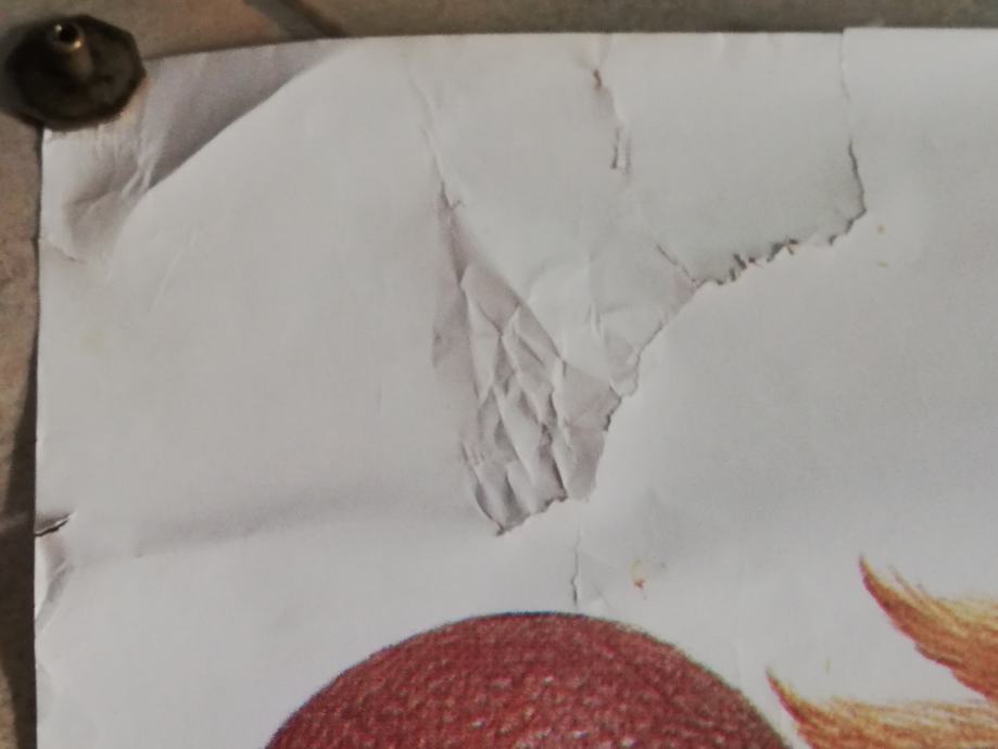 Stanje: plakat je godinama stajalo zarolan, nema otkinuti dijelova, ima poderotina u gornjem lijevom kutu, no ako se stručno zaljepi, neće se ni vidjeti.Sve ostalo kao na fotkama. Na fotografijama utezi radi boljih fotki.