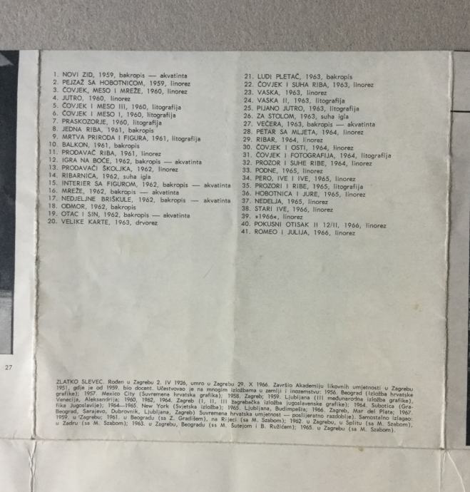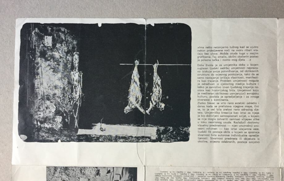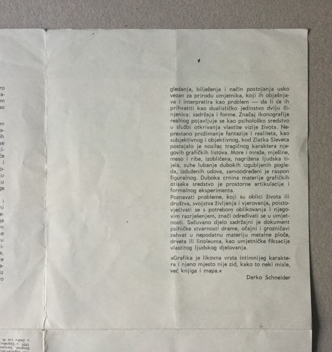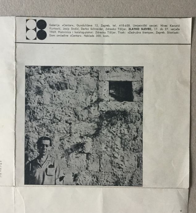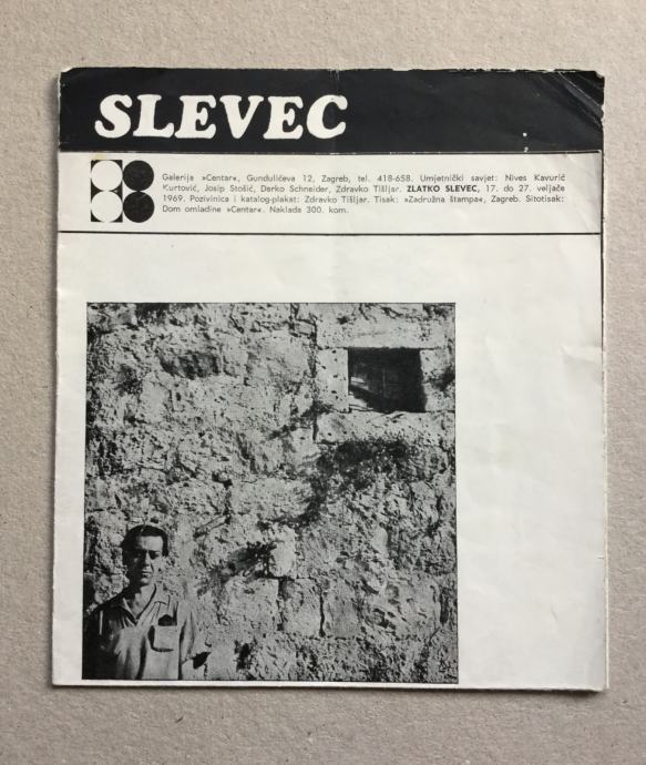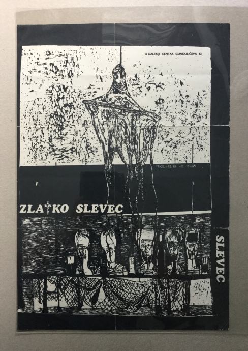 Originalni katalog-plakat za izložbu Zlatka Sleveca u galeriji "Centar" u Gundulićevoj ulici u Zagrebu iz 1969. godine. Dimenzije: 47,5 x 33,3 cm