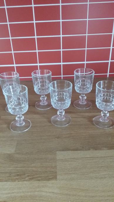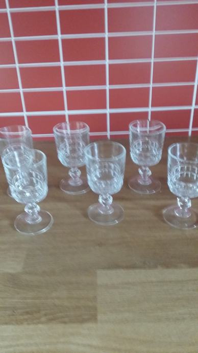 6 novi čaša za liker.Imaju izradu neku na sebi neznam od kojeg su kvaliteta.Kupila u njemačkoj na flomarktu.Imam puno čaša.Ove sam par × upotrijebila za šeri.Staklo kristal ili akropal neznam koja je kvaliteta ali je jako bistro staklo.Obicno stako vecinom je malo žuçkasto.