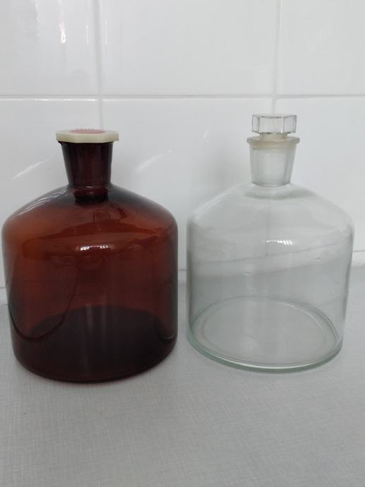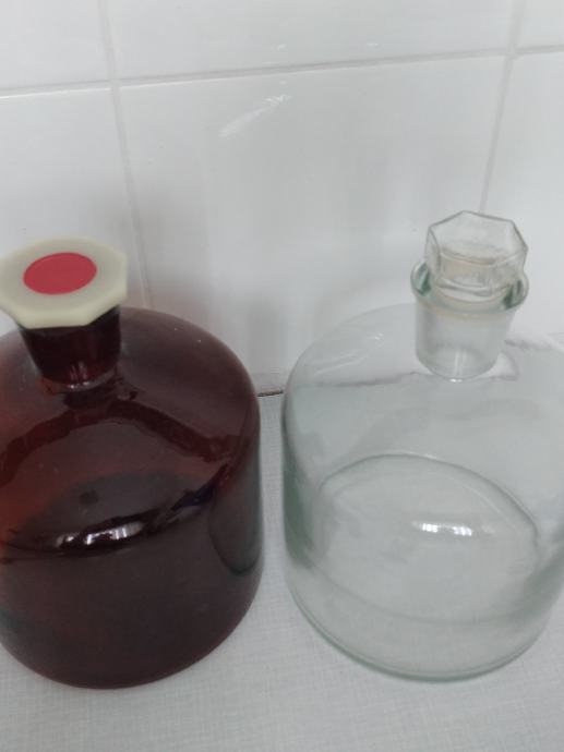 Laboratorijska boca za tekucine 2000ml sa beušenim grlom i cepom staklenim ili plasticnim. Masivno staklo, smeđe ili prozirno