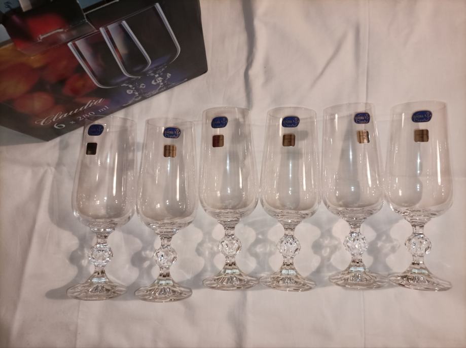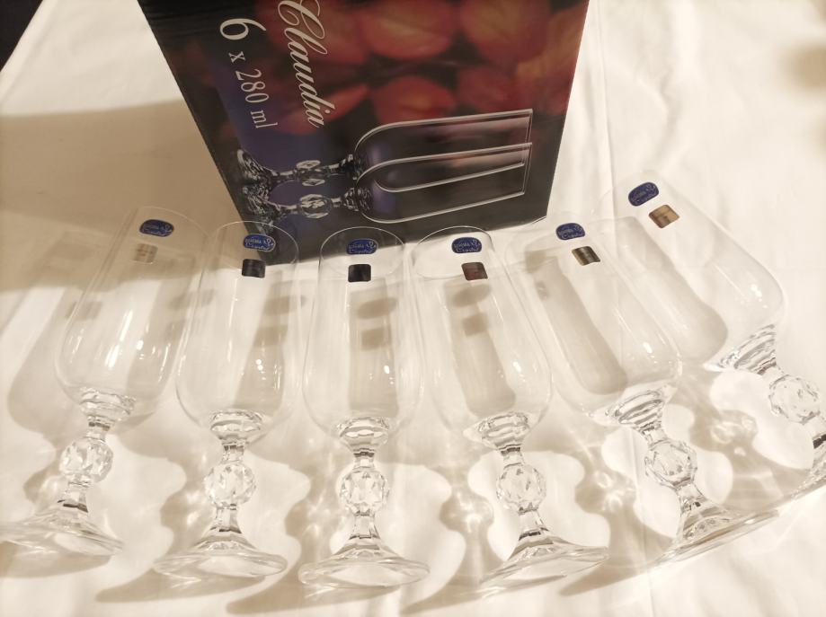 set 6/1 kristalnih čaša (280ml) na stalku... piše da su za pivo, ali osobno mislim da ih je možda bolje koristiti za šampanjac