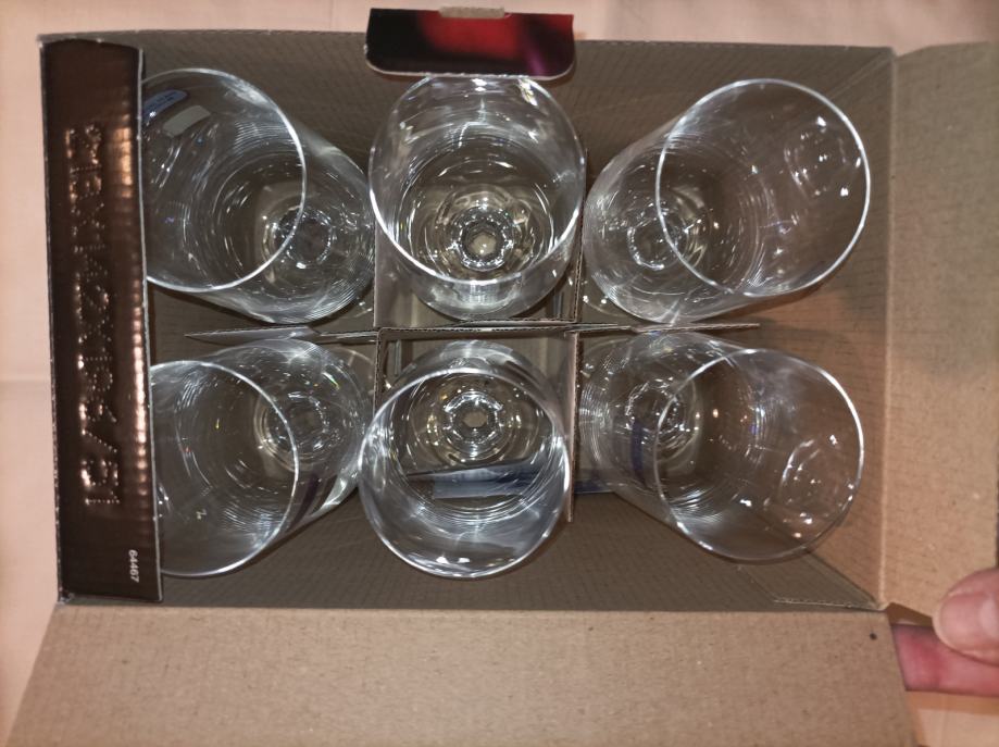 U originalnoj su kutiji, novo, nikad korišteno! (potpuno novo s tvorničkom naljepnicom - svaka čaša koja nije bila u upotrebi ima te naljepnice na sebi) ...prikladno i za pokloniti domaćinima..